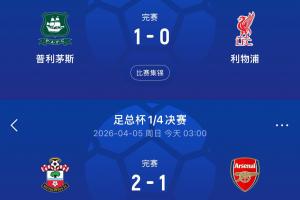 體育資訊04月05日訊 足總杯1/4決賽爆出冷門,英冠第7南安普頓2-1擊敗英超第1阿森納,槍手止步足總杯8強。