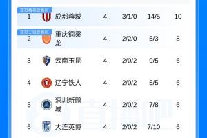 體育資訊04月05日訊 中超第4輪結(jié)束,目前積分榜上,三支西南地區(qū)球隊蓉城、銅梁龍和玉昆繼續(xù)領(lǐng)跑,泰山跌至第11,5隊仍負(fù)分,申花逆轉(zhuǎn)取勝逃離降級區(qū),津門虎一勝難求負(fù)9分仍墊底。