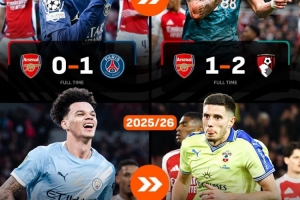 在接近1年的時(shí)間里,阿森納首次在各項(xiàng)賽事中遭遇連敗。2024-25賽季,阿森納曾在面對(duì)巴黎圣日耳曼和伯恩茅斯時(shí)遭遇連敗,分別以0-1和1-2的比分不敵對(duì)手。