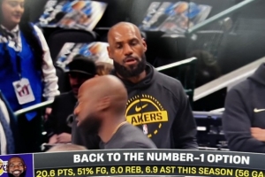 湖人媒體??????????????????曬出詹姆斯賽前熱身直播畫面,直播方配文:“重回球隊(duì)頭號(hào)選擇(BACK TO THE NUMBER-1 OPTION)!“