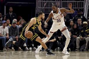 此役,杜蘭特17中10砍下31分8板8助3帽,庫(kù)里復(fù)出首秀21中11貢獻(xiàn)29分2板4助1斷。