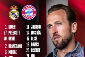 體育資訊04月06日訊 拜仁官方公布了歐冠1/4決賽對(duì)陣皇馬首回合的球員名單,凱恩回歸領(lǐng)銜,基米希、迪亞斯、穆西亞拉在列。