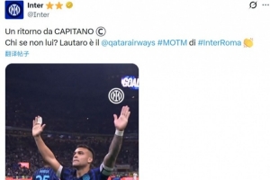 他也在今日被俱樂部官方評選為本場比賽的隊內(nèi)MVP。國米官方也點評道:“隊長回歸!除了他還能是誰呢?勞塔羅當(dāng)選國米vs羅馬的隊內(nèi)MVP?!?/p>