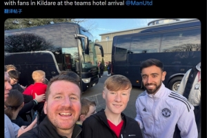B費(fèi)在曼聯(lián)下榻的酒店外花了一個小時為球迷簽名和合影,一位球迷在社交媒體上曬出與B費(fèi)的合照,配文:“世界最佳球員在球隊下榻的酒店花了一個小時為球迷簽名合影?!?/p>