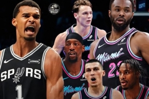 此役,熱火首發(fā)五人僅搶到14個(gè)籃板,而對(duì)面文班亞馬一人就15個(gè)籃板。