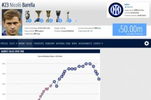體育資訊03月24日訊 德轉(zhuǎn)今天更新了意甲球員身價(jià),29歲的國米中場巴雷拉身價(jià)跌至5000萬歐,生涯首次身價(jià)四連跌。
