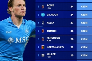1、麥克托米奈(那不勒斯,29歲):4500萬(wàn)歐