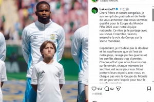 體育資訊4月7日訊 民主剛果前鋒巴坎布更新社媒動(dòng)態(tài),談到了民主剛果進(jìn)入世界杯的話題。