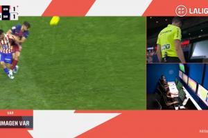 瓦倫西亞球員已完全控制球權并準備傳球給隊友。隨后塞爾塔球員伸腿插入其技術動作的運行軌跡中。瓦倫西亞球員自然落地時踩到對方,形成踩踏。主裁判的當場判罰未被VAR修正。