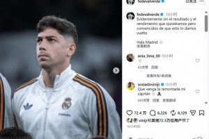 本場(chǎng)比賽巴爾韋德首發(fā)出戰(zhàn),賽后他也在個(gè)人社媒發(fā)文鼓勵(lì)球隊(duì)寫(xiě)道:“顯然未能取得我們所期望的成績(jī)與表現(xiàn),但我們堅(jiān)信定能扭轉(zhuǎn)局面。Hala Madrid ??”
