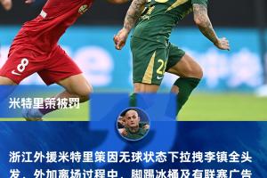 體育資訊04月08日訊 中足聯公布對浙江外援米特里策處罰,米特里策因無球狀態(tài)下拉拽李鎮(zhèn)全頭發(fā),外加離場過程中,腳踢冰桶及有聯賽廣告妝點的側墻,最終被停賽4場,罰款4萬元。