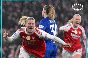 本場比賽,阿森納女足由布萊克史提紐斯、凱莉和魯索先后進(jìn)球,切爾西女足則由里斯·詹姆斯的妹妹勞倫·詹姆斯打進(jìn)1球,最終阿森納3-1取得首回合的勝利。