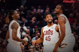 賽后球隊(duì)官方發(fā)布贏球海報(bào),封面為米切爾、莫布里和埃利斯。