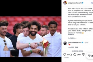 體育資訊3月25日訊 薩拉赫官宣賽季結(jié)束后離隊,他的利物浦隊友羅伯遜通過社交媒體送上告別。
