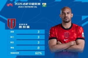在本輪最佳球員評(píng)選中,費(fèi)利佩當(dāng)選2026怡寶中超聯(lián)賽第4輪最佳球員!憑借出色表現(xiàn),費(fèi)利佩閃耀賽場(chǎng)、實(shí)至名歸,讓我們?yōu)樗炔剩?/p>