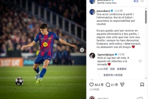 庫(kù)巴西賽后社媒表示,自己為這場(chǎng)失利承擔(dān)責(zé)任,巴薩傳奇后衛(wèi)皮克留言鼓勵(lì):“昂首挺胸,我的傳奇,次回合你們就把他們打爆?!?/p>