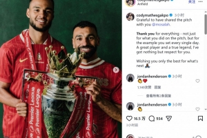 體育資訊3月25日訊 薩拉赫將在本賽季結(jié)束后離開(kāi)利物浦,隊(duì)友加克波社媒發(fā)文致敬。