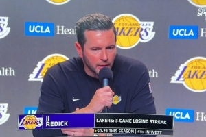 體育資訊4月10日訊 湖人客場(chǎng)挑戰(zhàn)勇士,賽前主教練雷迪克接受采訪,談到球隊(duì)近期的三連敗。