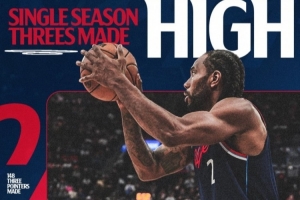 本場比賽過后,倫納德單賽季已經(jīng)命中149記三分,創(chuàng)個(gè)人生涯新紀(jì)錄(此前紀(jì)錄為2016-17賽季的147記)。