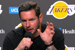 記者:“嘿,JJ。哦,抱歉,你先說吧。顯然,勒布朗的角色最近發(fā)生了很大變化。當(dāng)你談到展現(xiàn)斗志時(shí),看到像勒布朗這樣41歲的老將依然在場上拼盡全力,其他人自然也不敢松懈。你剛才提到你們開了個(gè)會(huì),他當(dāng)時(shí)在會(huì)上給大家傳達(dá)了什么信息?”
