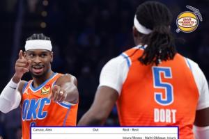 雷霆明日戰(zhàn)掘金的傷病報告,10人輪休,10個人的受傷部位還都不同。