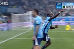 體育資訊04月10日訊 中超第5輪,大連英博vs浙江。比賽第62分鐘,大連英博2-0擴大領(lǐng)先!阿奇姆彭半單刀推射遠角破門。