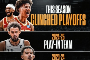 老鷹戰(zhàn)績46勝35負,排名東部第五、正式鎖定季后賽(東部前六)和東南區(qū)冠軍。