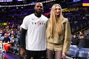 賽前,湖人官方曬出了詹姆斯和卡梅隆·布林克(官方身高195cm)的合影。