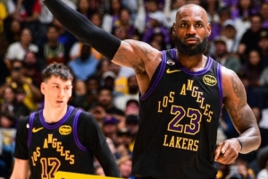 賽后湖人官方曬出本場(chǎng)的贏球海報(bào),詹姆斯和拉拉維亞登上封面。