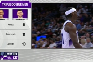 爵士主場迎戰(zhàn)灰熊,截至發(fā)稿貝茲·姆本和康查爾同時(shí)達(dá)成三雙。