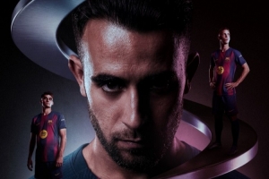 巴薩官方社媒發(fā)布了為此役制作的海報(bào),埃里克·加西亞占據(jù)C位,奧爾莫、馬丁出鏡。