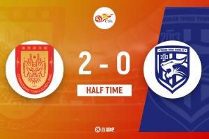 傷停補(bǔ)時(shí)3分鐘,上半場(chǎng)結(jié)束,重慶銅梁龍2-0武漢三鎮(zhèn)。