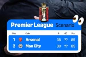 轉(zhuǎn)播方亞馬遜列出一種潛在的英超爭冠形勢:若曼城接下來在英超全勝(包括主場對槍手的直接對話),而阿森納贏得除直接對話的另外五輪比賽,雙方在全部比賽結(jié)束后的比分均為85分,需要比較凈勝球才能決定最終冠軍歸屬。
