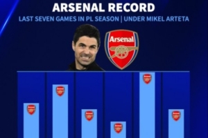 體育資訊4月11日訊 阿森納在本輪英超爆冷主場(chǎng)1-2不敵伯恩茅斯,數(shù)據(jù)統(tǒng)計(jì)顯示塔帥執(zhí)教阿森納的賽季最后7輪聯(lián)賽從未拿滿分?jǐn)?shù)。