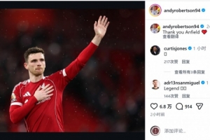 羅伯遜將在本賽季結(jié)束后離開利物浦,他在社交媒體上曬出謝場的照片,配文:“謝謝你,安菲爾德?!?/p>
