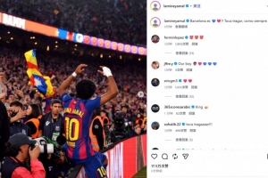 亞馬爾也在賽后通過社媒曬出自己在諾坎普坐廣告牌的霸氣慶祝照,并配文:“巴塞羅那是紅藍色的????!!和往常一樣,是時候接受現(xiàn)實了。”