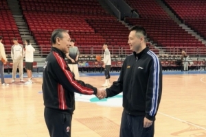 上午的踩場訓(xùn)練中,場邊發(fā)生有趣的一幕,北京男籃主帥許利民和上海男籃主帥盧偉寒暄,他說道:“你們現(xiàn)在太猛了,拿第一了啊?!?/p>
