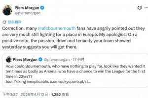 摩根社媒連續(xù)發(fā)文批阿森納:拜托至少表現(xiàn)出你想成為冠軍的樣子