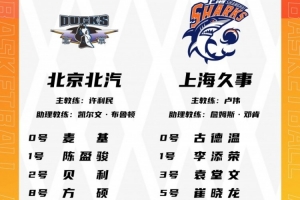 兩隊本場比賽的大名單已經(jīng)出爐,北京男籃為麥基、陳盈駿、貝利、方碩、雷蒙、杰曼、斯佩爾曼、張才仁、范子銘、翟曉川、張知垚、周琦。
