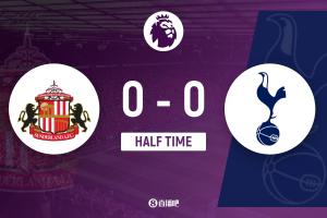 半場結(jié)束,桑德蘭0-0熱刺。