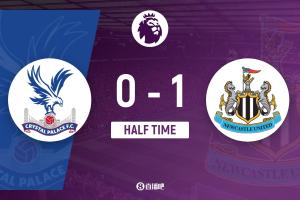半場(chǎng)結(jié)束,水晶宮暫0-1紐卡斯?fàn)柭?lián)。