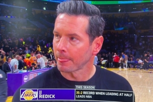 體育資訊4月13日訊 NBA常規(guī)賽,湖人半場62-45領先爵士。主帥雷迪克在中場時接受了采訪。