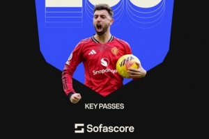 體育資訊3月21日訊 據(jù)Sofascore統(tǒng)計(jì),B費(fèi)本賽季英超送出100記關(guān)鍵傳球,遙遙領(lǐng)先其他球員,他也是本賽季五大聯(lián)賽首位關(guān)鍵傳球達(dá)到100次的球員。