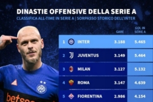體育資訊4月13日訊 德國(guó)轉(zhuǎn)會(huì)市場(chǎng)統(tǒng)計(jì)了各隊(duì)在意甲的歷史進(jìn)球總數(shù)量,并列出榜單,國(guó)米打進(jìn)5465球,超越尤文居首。