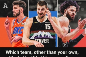 今日TA公布調(diào)查結(jié)果,調(diào)查情況顯示,雷霆獲得了50%的選票,高居第一,馬刺25.3%第二,凱爾特人8.2%第三,掘金7.5%第四。其余球隊(duì)得票情況如上圖所示。