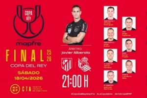 體育資訊4月13日訊 北京時(shí)間4月19日凌晨3:00,西班牙國(guó)王杯決賽,馬競(jìng)將對(duì)陣皇家社會(huì)。西班牙足協(xié)官方今日公布了本場(chǎng)比賽的裁判組,哈維爾·阿韋洛亞執(zhí)法。