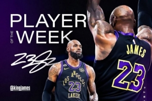 這是詹姆斯生涯第70次當(dāng)選周最佳球員,再創(chuàng)歷史第一紀(jì)錄。