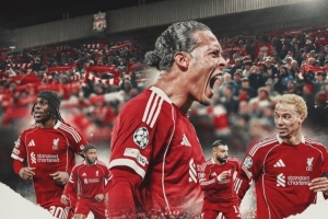 利物浦官方社媒發(fā)布了為此役制作的海報(bào),范戴克、埃基蒂克、薩拉赫、弗林蓬、喬·戈麥斯出鏡。