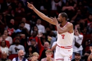 現(xiàn)實是,若沒有杜蘭特,這支火箭很可能只是一支樂透區(qū)球隊,至多躋身附加賽區(qū)??傮w而言,球隊失去了狄龍·布魯克斯、杰倫·格林和范弗里特三名首發(fā)球員。