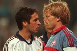 卡恩是21世紀(jì)初皇馬與拜仁交鋒的核心人物,這位門(mén)將從不回避對(duì)抗,做客伯納烏時(shí)更是如此。2000年首回合落敗后,他放話激怒拜仁球迷:“拜仁能對(duì)陣任何西班牙球隊(duì)轟進(jìn)五球,皇馬會(huì)見(jiàn)識(shí)到,也會(huì)大吃一驚?!?最終阿內(nèi)爾卡的頭球破門(mén),擊碎了拜仁的決賽夢(mèng)想。